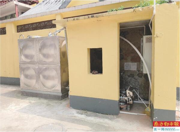 近日,南都记者来到龙庆大街14、16号里看到,大院与第一次全国劳动大会旧址仅一墙之隔。银白色水箱安置在门口的闲置值班室旁边,仔细观察发现,水箱并非紧贴着墙壁,“这样水箱也不会对第一次全国劳动大会旧址围墙产生影响。”张巧红介绍。旁边的闲置值班室门被一把锁锁住,从墙上的窗户看进去,崭新的银白色水泵,旁边是配套的供电设施。