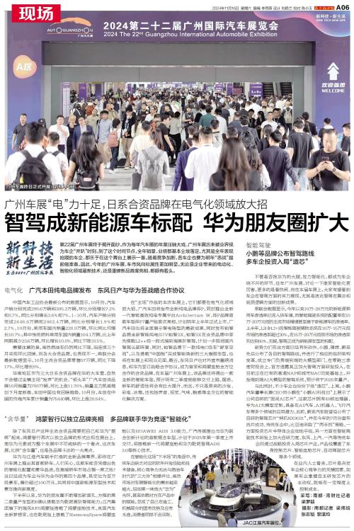 在“主场”作战的本次车展上,它们都要在电气化领域放大招。广汽本田将发布全新纯电品牌烨P,同时推出全新一代智能高效纯电专属平台Architecture W。烨P品牌首款车型烨P7量产版首次亮相,计划明年上半年正式上市。广汽丰田也将全面展示智电转型的最新成果,同时发布铂智品牌全新智能纯电SUV铂智3X。铂智3X在合资品牌中率先搭载L2++级一段式端到端高阶智驾,计划一步挺进国内智驾头部阵营。同时,铂智品牌下一款纯电C级车“舒享空间”,以及搭载“中国舱”完成智能焕新的三大旗舰车型,也将在车展上和观众见面。最近,东风日产也对外宣布重磅消息,和华为签订战略合作协议,成为首家和鸿蒙座舱全方位合作的合资品牌。在本届广州车展上,该品牌还将展出一款全新的智能车型,预计明年二季度就能够交付上路。据悉,新车的舒适性将会有巨大提升。而且,不只是原来的沙发、彩电、冰箱,还包括声音、视觉、气味、触感等全方位的智能化解决方案。