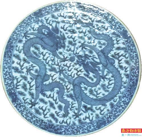镶嵌在格兰堂内壁的双龙瓷饰。