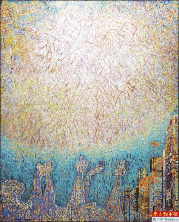南都:在本次展览中,看到了你2004年给广东省档案馆国际会议中心做的作品木浮雕壁画《南粤秋实》资料展示,还有2016年的玻璃马赛克作品《还不是烟花样的人生》和2020年马赛克镶嵌作品《天花无数月中开》。你的作品运用的媒介改变了,为什么?