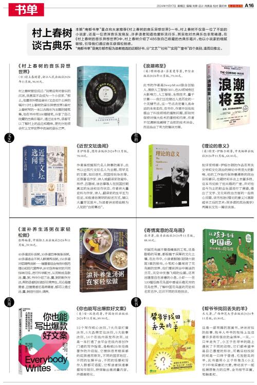 本期“南都书单”重点向大家推荐《村上春树的音乐异想世界》一书。
