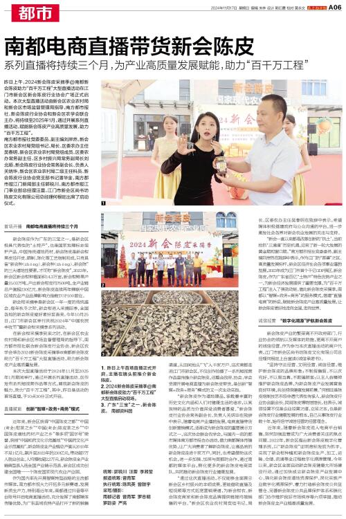 昨日上午,2024新会陈皮采摘季@南都新会陈皮助力“百千万工程”大型直播活动在江门市新会区新会陈皮行业协会广场正式启动。