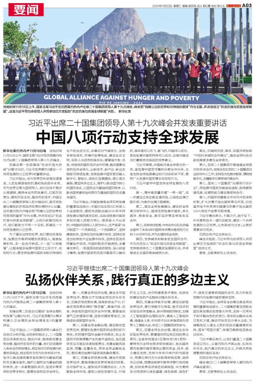 当地时间11月18日下午,国家主席习近平在巴西里约热内卢继续出席二十国集团领导人第十九次峰会。