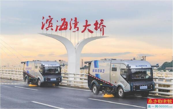 去年9月,东莞首批无人环卫车在滨海湾大桥上路测试。 滨海湾融媒供图