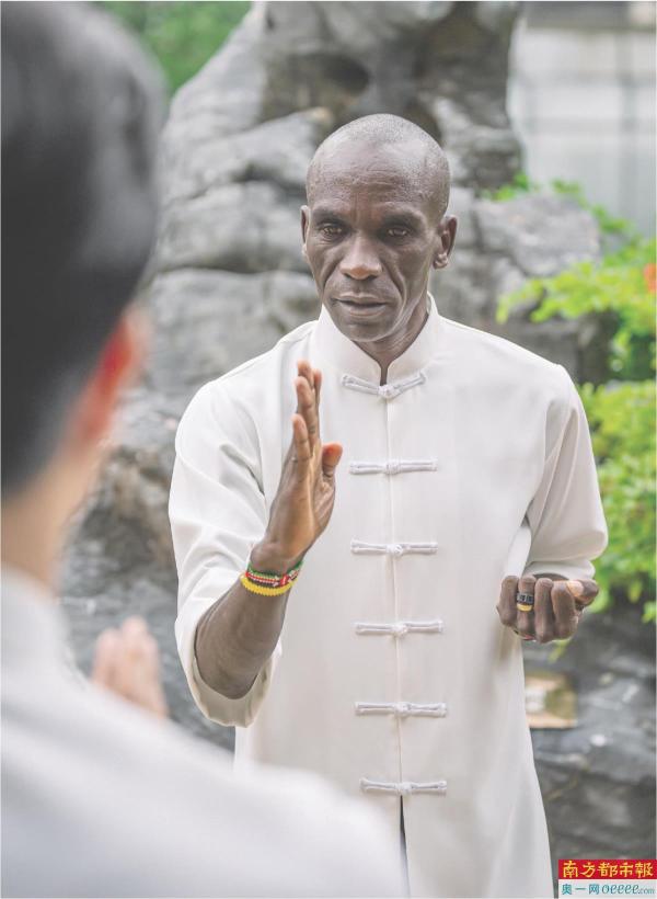 基普乔格体验了咏春拳,与苏炳添相识,还带领孩子们跑步。