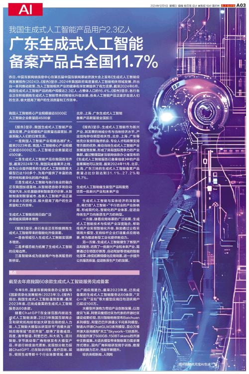 广东生成式人工智能备案产品占全国11.7%