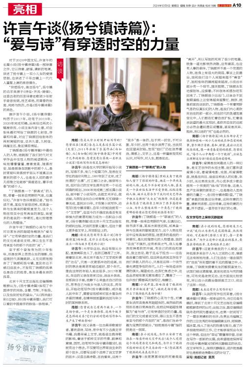 许言午谈《扬兮镇诗篇》:“爱与诗”有穿透时空的力量