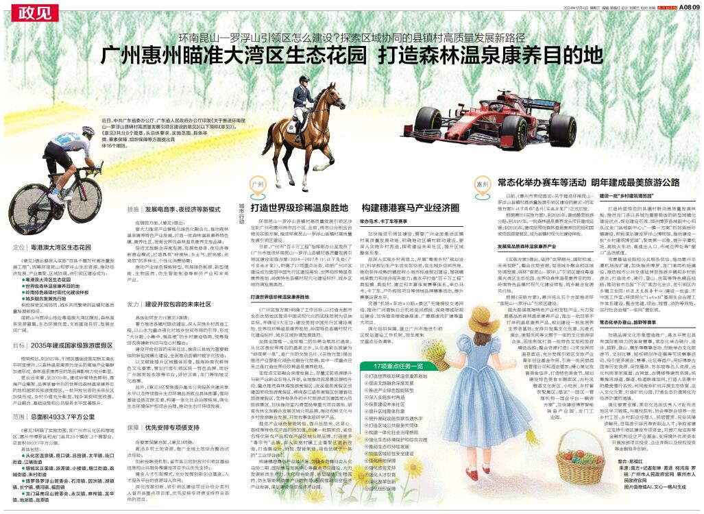 近日,中共广东省委办公厅、广东省人民政府办公厅印发《关于推进环南昆山—罗浮山县镇村高质量发展引领区建设的意见》。