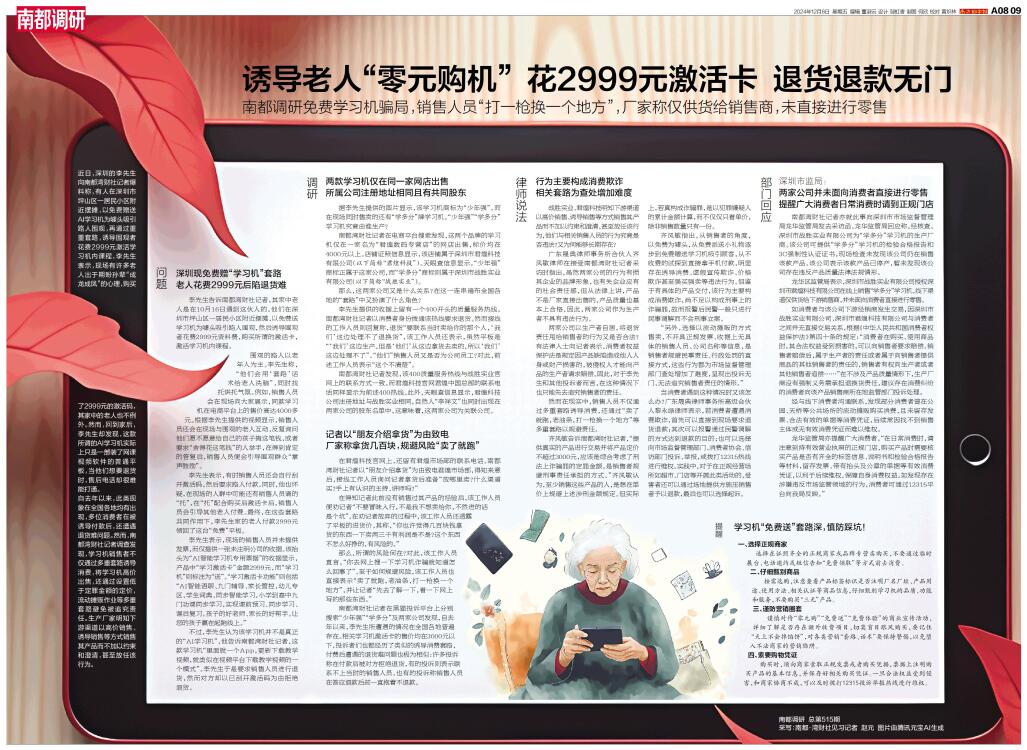 诱导老人“零元购机” 花2999元激活卡 退货退款无门