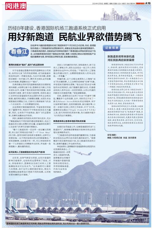 历经多年兴建的香港国际机场三跑道系统于11月28日正式启用。