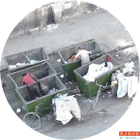 在叙利亚大马士革,两名少年在垃圾箱中捡拾塑料瓶(手机照片)。