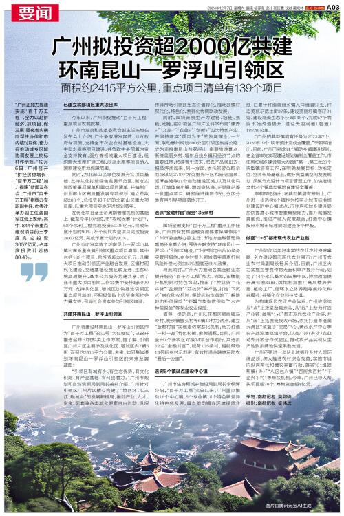 广州拟投资超2000亿共建环南昆山—罗浮山引领区