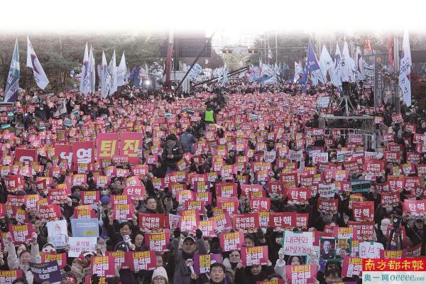 12月7日,民众在韩国首尔街头集会,要求弹劾尹锡悦。新华社发