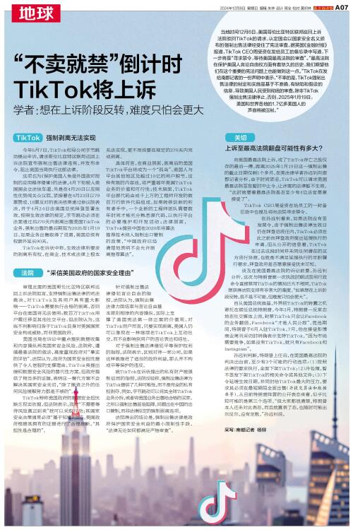 当地时间12月6日,美国哥伦比亚特区联邦巡回上诉法院驳回TikTok的请求,认定国会以国家安全名义颁布的强制出售法律经受住了宪法审查。