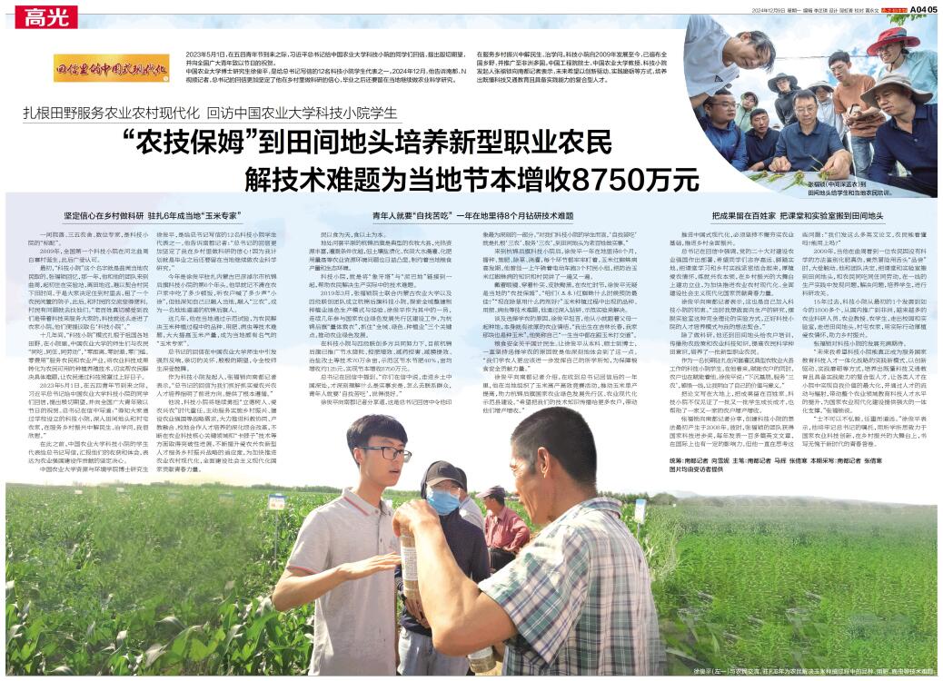 把论文写在大地上,把成果留在百姓家。科技小院不仅见证了一批又一批学生成长成才,也帮助了一家又一家的农户增产增收。