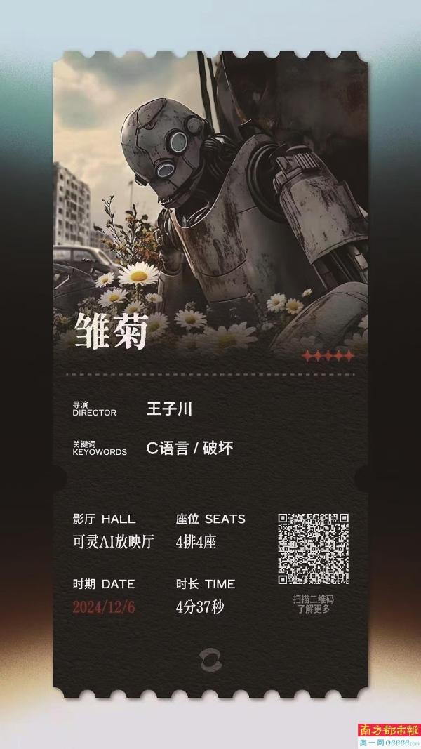 多位导演谈论AI共创的体验时都提到一点共识,即科幻和动画是最适合发挥想象的创作形式,而AI的加入带来更多表现手法。作为一位跨界话剧和电影圈的导演,王子川这次带来的科幻短片《雏菊》更像一次想象力爆棚的奇幻大冒险,无台词的意识流镜头中,有破坏、有轰炸、有花朵、有音乐。“可灵AI对于《雏菊》这部片子科幻类写实类展现形式非常好,尤其是图生视频方面。”参与《雏菊》制作的AIGC应用师温维斯以一幕窗户爆炸的运镜为例,对AI的自主创意生成颇为惊叹。