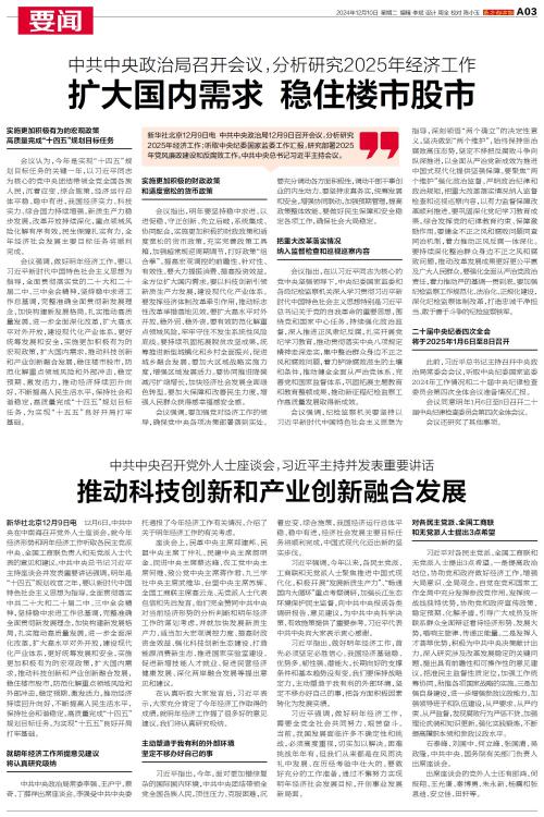 中共中央政治局12月9日召开会议,分析研究2025年经济工作;听取中央纪委国家监委工作汇报,研究部署2025年党风廉政建设和反腐败工作。