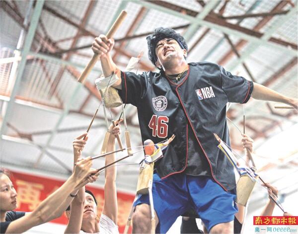 8月16日下午,依力凡和群演在排练主角和木偶的舞段。