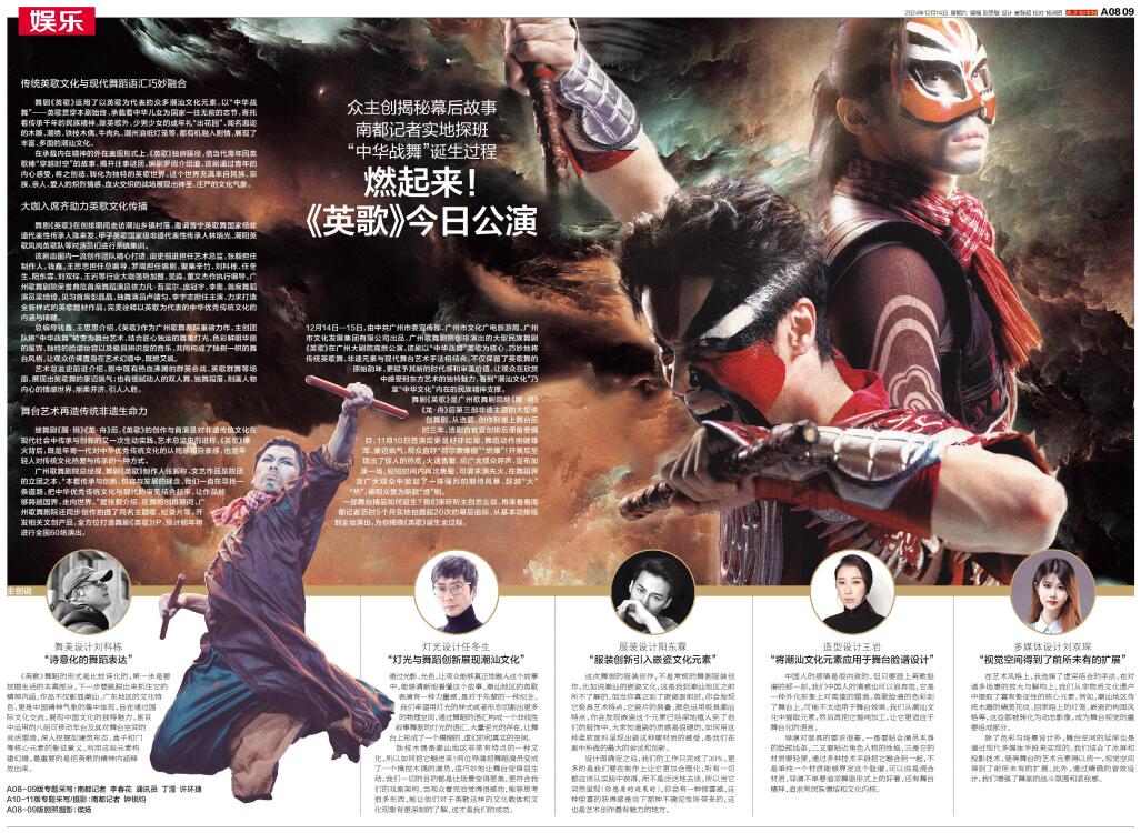12月14日—15日,由中共广州市委宣传部、广州市文化广电旅游局、广州市文化发展集团有限公司出品,广州歌舞剧院创排演出的大型民族舞剧《英歌》在广州大剧院高燃公演。