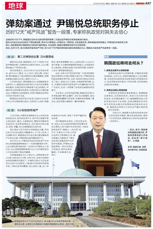 当地时间14日下午,韩国国会全体会议就在野党阵营第二次提出的尹锡悦总统弹劾案进行表决。
