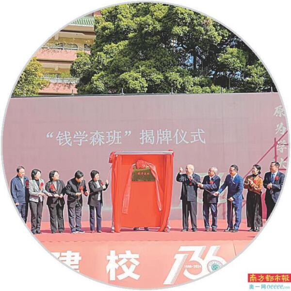 今年4月,广州市培英中学145周年校庆,典礼上举行了“钱学森班”授牌仪式,宣布广州首个“钱学森班”正式开班;12月8日,广州中学举行了“钱学森班”授牌仪式;同日,广州市第七中学迎来建校136周年,庆典上,七中“钱学森班”也正式揭牌。