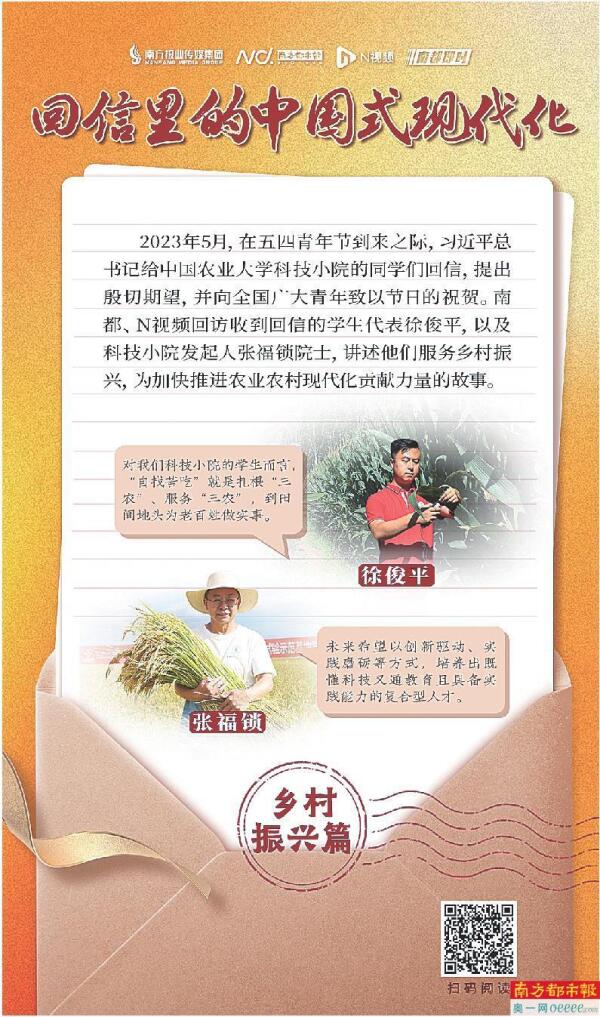 党的二十大以来,习近平总书记多次从不同维度聚焦中国式现代化这一重大命题,并通过书信的方式同各界人士深入交流。连日来,南都、N视频持续推出“回信里的中国式现代化”专题报道,通过回访收信人及相关人士,生动讲述他们扎根所在领域,牢记嘱托、辛勤耕耘,奋力书写中国式现代化建设新篇章的心路历程。