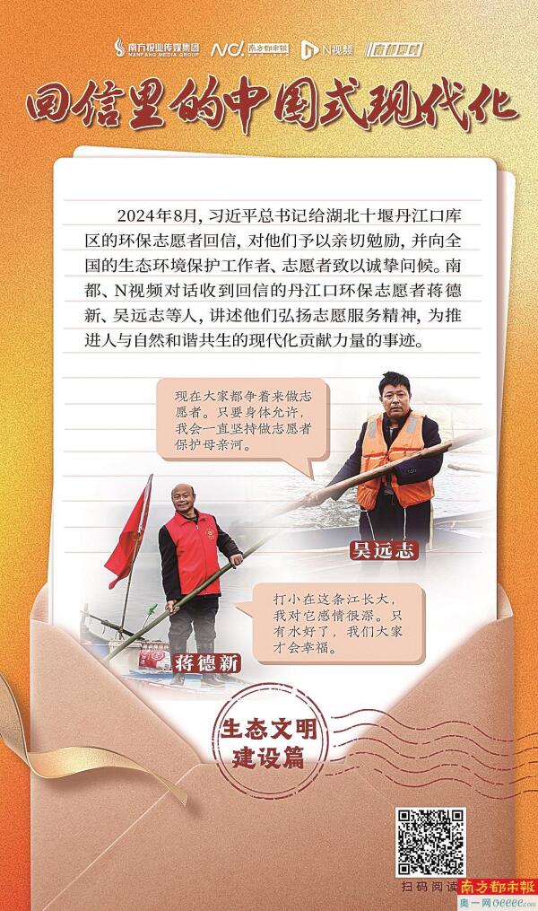 2024年11月,重温收到回信的时刻,丹江口环保志愿者蒋德新和吴远志仍然难掩激动,他们告诉南都记者,收到回信后做志愿工作“劲头更足了”,将牢记总书记的殷殷嘱托,“继续做好志愿工作,守护好我们的母亲河”。