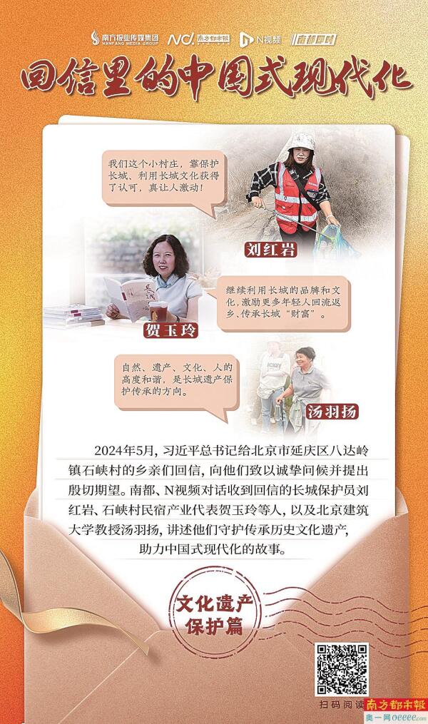 另一位写信代表、石峡村民宿产业代表贺玉玲告诉南都记者,将继续利用“长城”的品牌和文化,融入“民宿+”的产业力量,激励更多年轻人回流返乡、传承长城“财富”。