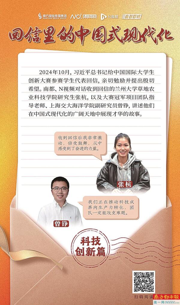 南都、N视频记者跨越大江南北,报道主题涵盖科技创新、文化遗产保护、生态文明建设、乡村振兴、教育强国建设等多个方面。正如习近平总书记在致深中通道建成开通的贺信中强调的,“中国式现代化是干出来的,伟大事业都成于实干”,在接受回访的多个领域人士中,无论是走出实验室的大学生创新团队、“像守护家园一样守护好长城”的村民,还是用心用情守护碧水的环保志愿者、创新书写文艺新篇的艺术家,他们无不从回信中汲取奋进力量,在中国式现代化征程中追光而行,以昂扬向上的姿态展现新担当、新作为。