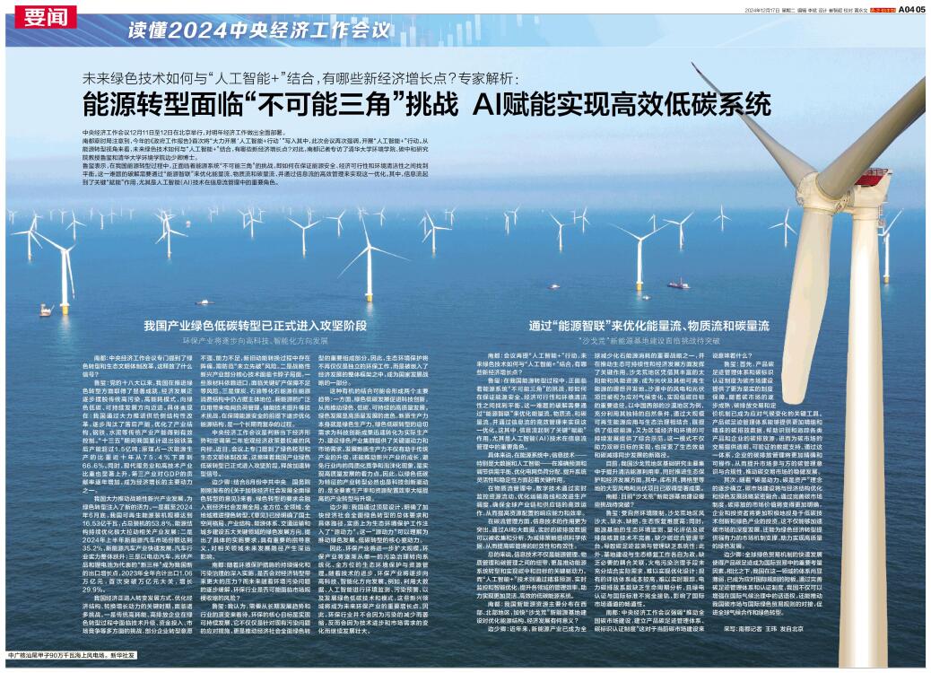 能源转型面临“不可能三角”挑战 AI赋能实现高效低碳系统