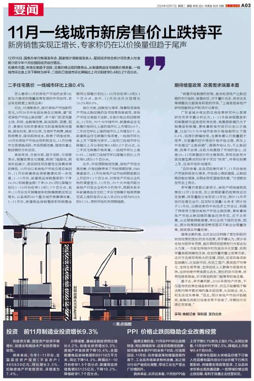 12月16日,国新办举行新闻发布会,国家统计局新闻发言人、国民经济综合统计司负责人付凌晖介绍今年11月份国民经济运行情况。
