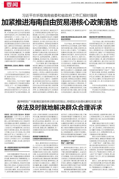 12月17日上午,省委书记黄坤明前往广州市黄埔区接待来访群众,面对面听取群众诉求。