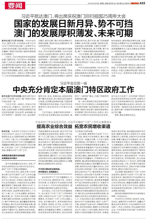 中央充分肯定本届澳门特区政府工作