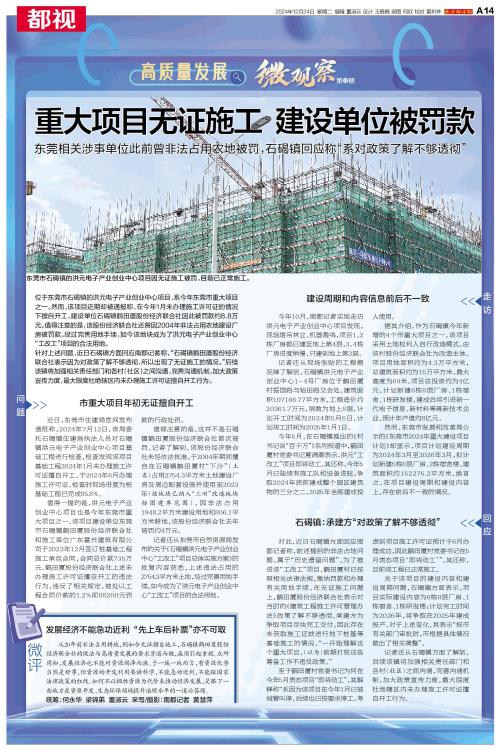 重大项目无证施工 建设单位被罚款