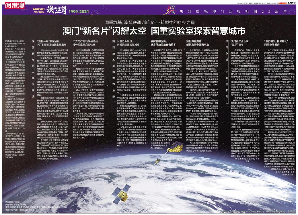 澳门“新名片”闪耀太空 国重实验室探索智慧城市