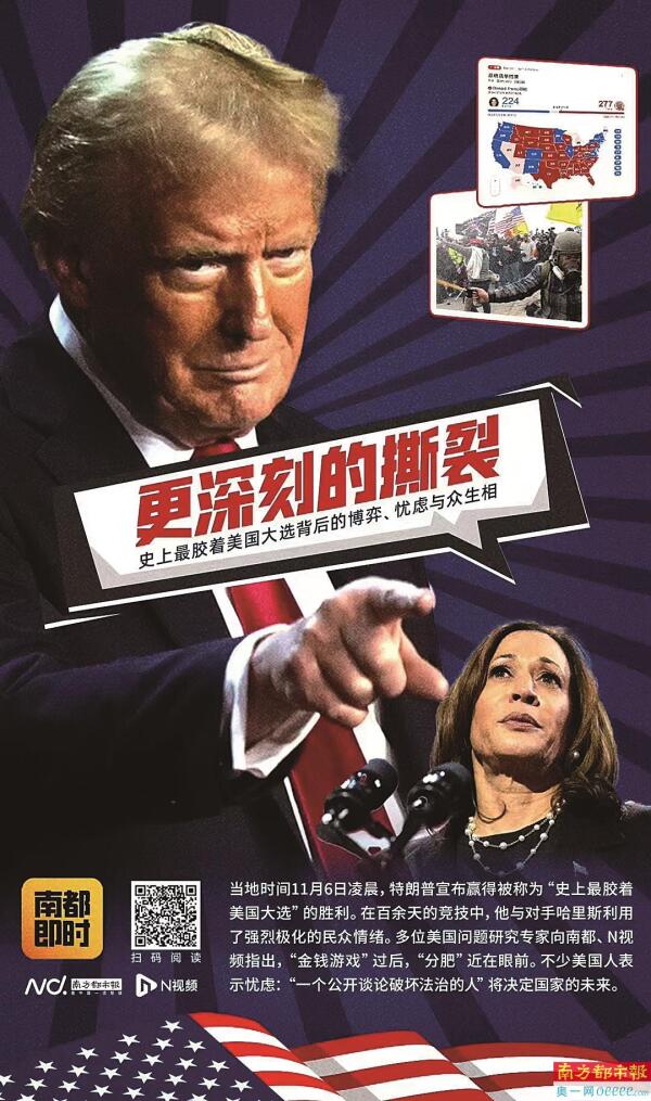 与特朗普的惊人回归相伴的言论是——“黑暗的转折”“新的不确定时代”“权力平衡重被打破”。美国社会矛盾和斗争也更加尖锐。“关于国家性格和公民安全的生死之战”后,美国将在未来路径选择上面临对决。