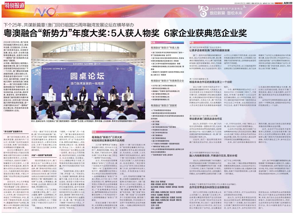 粤澳融合“新势力”年度大奖:5人获人物奖 6家企业获典范企业奖