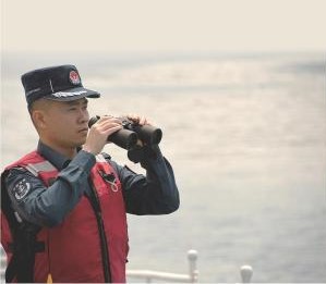 “我们经常与他开玩笑,就算他让我们一条腿都游不过他。”执法员江冠南说。