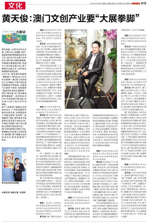 澳门回归祖国25周年之际,南都推出文化澳门大咖谈系列。第四期,澳门漫画从业员协会会长黄天俊接受了专访。