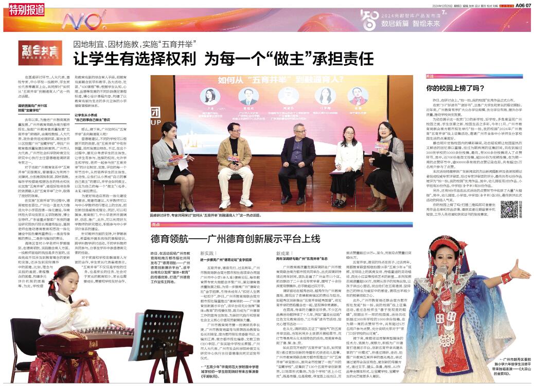 在圆桌研讨环节,人大代表、高校专家、中小学校一线教师、学生家长代表等嘉宾上台,共同探讨“如何从‘五育并举’到融通育人?”这一热点话题。