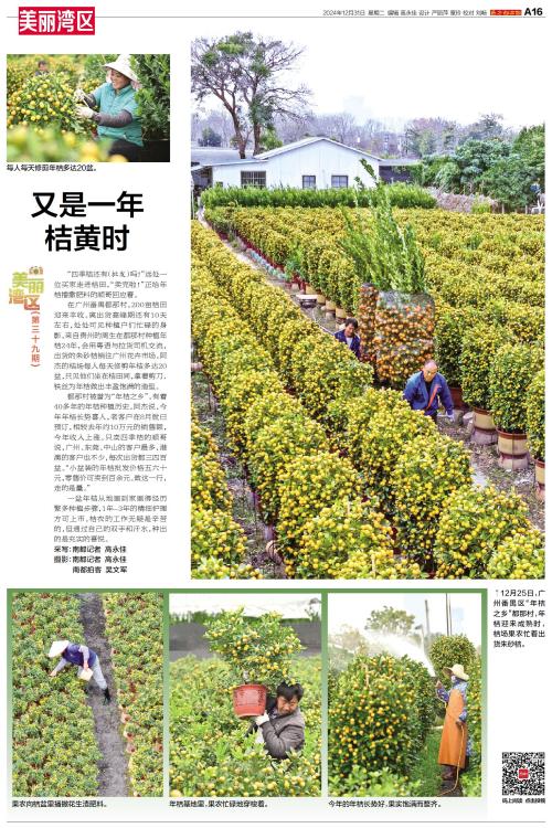 在广州番禺都那村,200亩桔田迎来丰收。离出货高峰期还有10天左右,处处可见种植户们忙碌的身影。