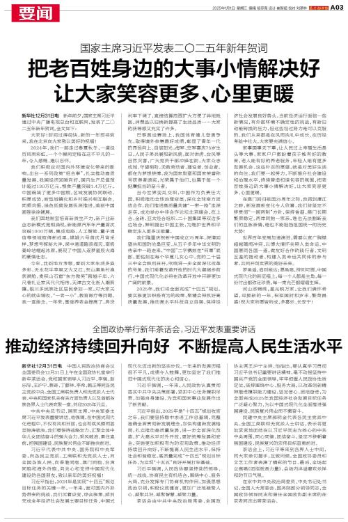 新年前夕,国家主席习近平通过中央广播电视总台和互联网,发表了二〇二五年新年贺词。