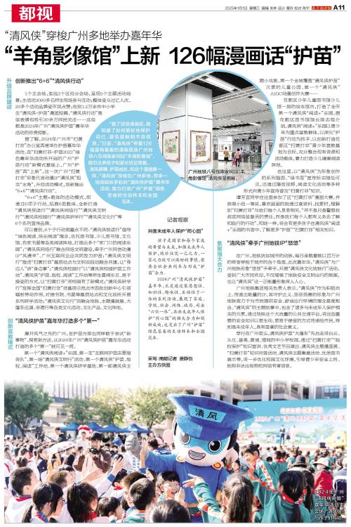 日前,“清风侠”带着126幅富有童趣的漫画现身广州地铁八号线陈家祠站“羊角影像馆”,吸引众多孩子和家长驻足观看。