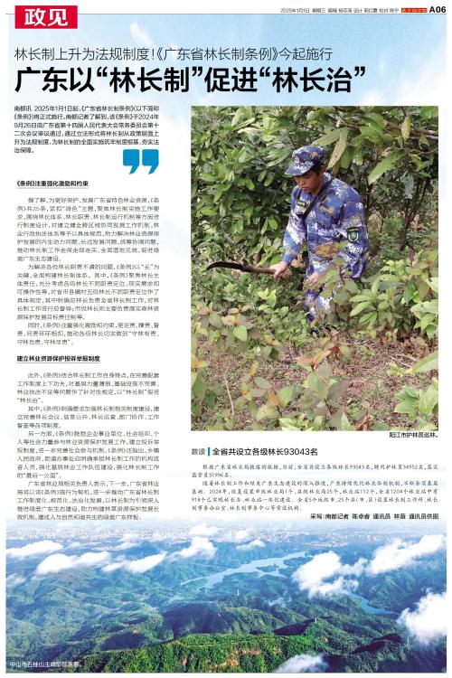 2025年1月1日起,《广东省林长制条例》(以下简称《条例》)将正式施行。