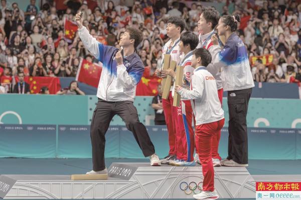 耀 2024年是国际体育大年,其中最为瞩目的便是四年一度的奥运会。“浪漫之都”法国巴黎,10500名运动健儿挥洒汗水、同台较量;206个国家和地区的代表队展示自我、为梦拼搏;32项世界纪录、125项奥运纪录被改写刷新。浪漫与激情闪耀赛场,连接世界。图为2024年7月30日,巴黎奥运会乒乓球混合双打项目收官,中朝韩三国选手自拍留念。