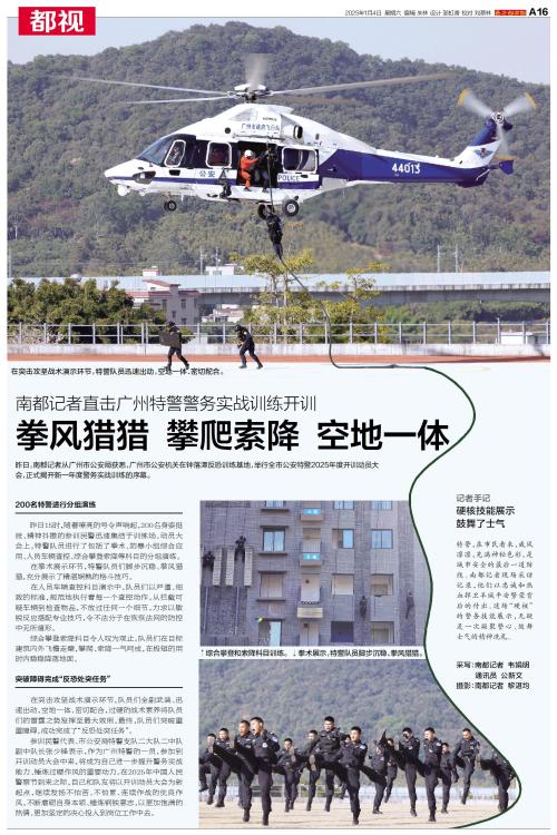 昨日,南都记者从广州市公安局获悉,广州市公安机关在钟落潭反恐训练基地,举行全市公安特警2025年度开训动员大会,正式揭开新一年度警务实战训练的序幕。