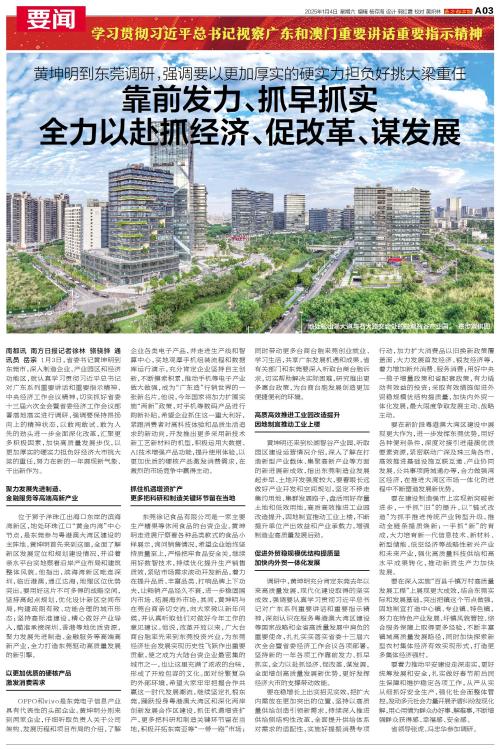 省委书记黄坤明到东莞市,深入制造企业、产业园区和经济功能区,就认真学习贯彻习近平总书记对广东系列重要讲话和重要指示精神、中央经济工作会议精神,切实抓好省委十三届六次全会暨省委经济工作会议部署落地落实进