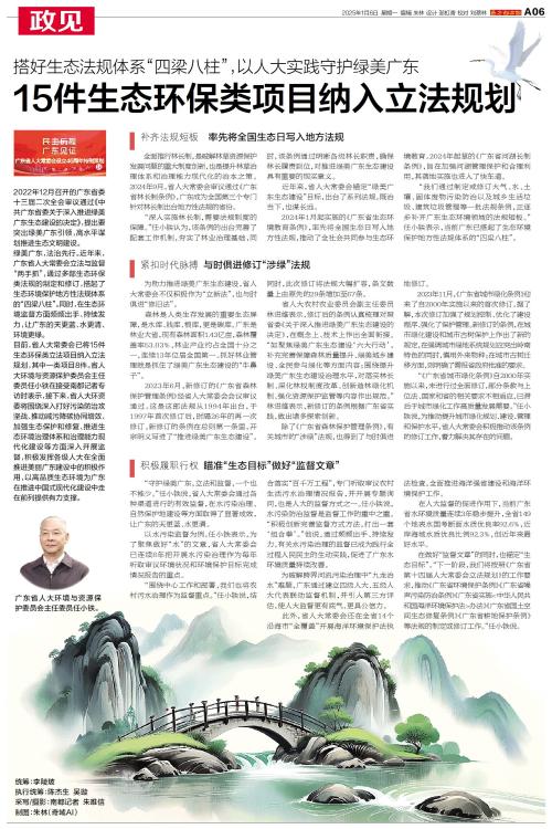 2022年12月召开的广东省委十三届二次全会审议通过《中共广东省委关于深入推进绿美广东生态建设的决定》,提出要突出绿美广东引领,高水平谋划推进生态文明建设。
