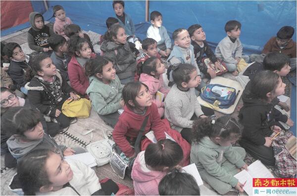 2025年1月6日,学生们在加沙地带一处临时庇护所上课。