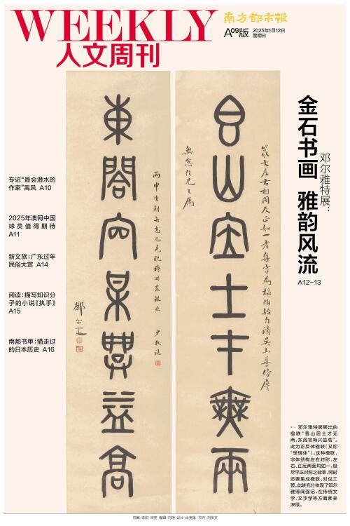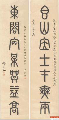 邓尔雅特展展出的楹联“香山居士才无两,东阁官梅兴益高”。